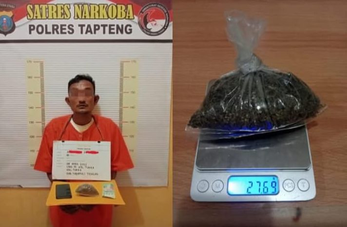 Adapun identitas pelaku yang berhasil diamankan yakni AS (40 Thn), wiraswasta warga Kelurahan Tukka Kab. Tapteng dengan barang bukti berupa satu bungkus ganja kering seberat 27,69 gram bruto dan satu unit handphone android serta uang tunai sebesar Rp 20.000.