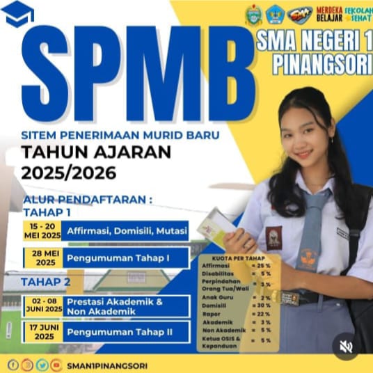 Saat ini, SMA Negeri 1 Pinang Sori mengumumkan Sistem Penerimaan Siswa Baru (SPMB) untuk tahun ajaran 2025/2026.